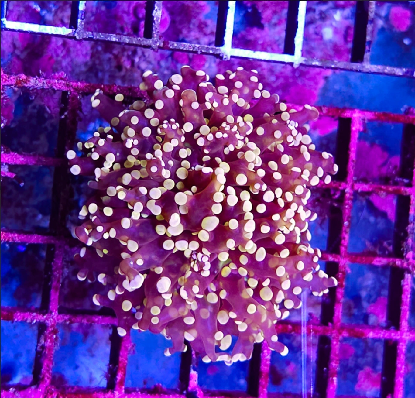 This octospawn coral is by far one of the best we have with it stand out and hard to find colors of burgundy/red body and Orange tips it's definitely gonna be 1 needed in your tank. Give about 3-5 inches of space between corals. It likes moderate flow and lighting.