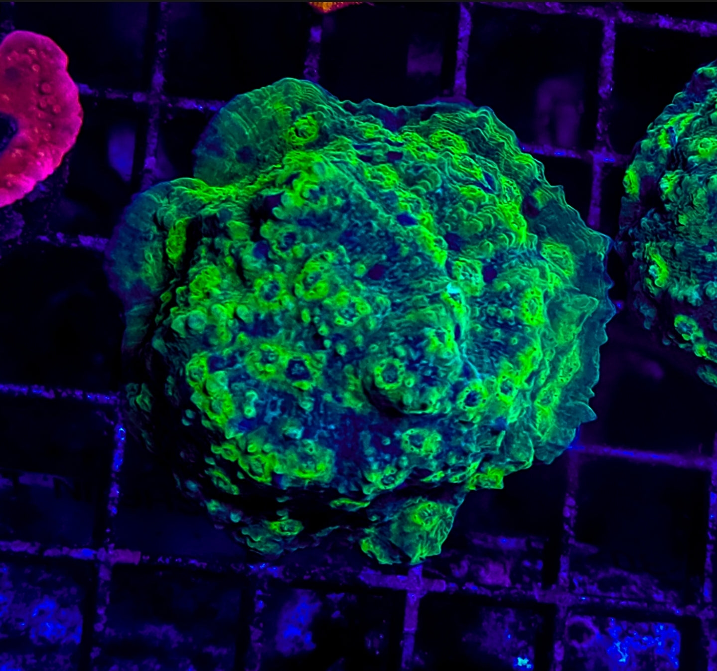 The toxic spill chalice is quite interesting with its multiple different colored greens looking like their oozing over the entire body. It likes moderate to low flow and lighting